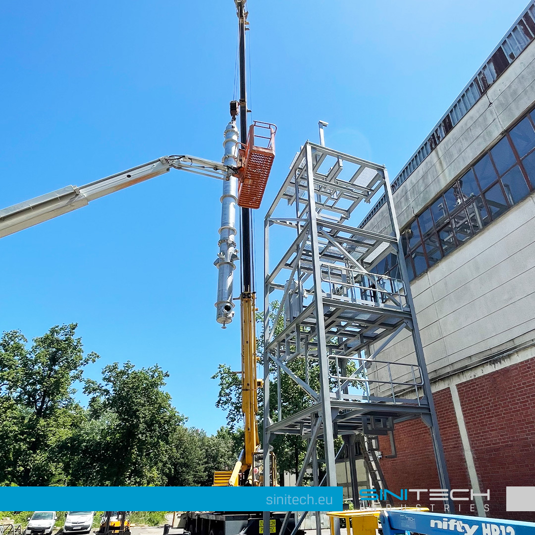 Ethanol SKID unit Basic data: Skid system with 2 distillery columns, 1 pressure vessels and piping Project Year: 2022. Status: Delivered Skid Ethanol plant Chemical Industry FEED Engineering AISI 316 Stainless steel This project took place from March 2022 to July 2022, and the project itself consisted of the design, feed engineering and manufacturing of process industry equipment. Equipment that we manufactured is following; 2 x distilation columns, 1 x pressure vessels, indluding all pipelines and carbon steel supporting construction, as part of bioethanol plant capacity expansion. The installation of the equipment itself and commissioning was also part of our scope of work. The material from which the process equipment is made is AISI316, with overal height of skid unit in total of approx 20 m when installed. Project scope: Design of Equipment Feed Engineering Material purchase Process Equipment manufacturing Pressure tests under TUV Installation of carbon steel supporting structure Manufacturing of complete pipelines Installation of Process Equipment and pipelines Packing & Shipping of Equipment Project photos