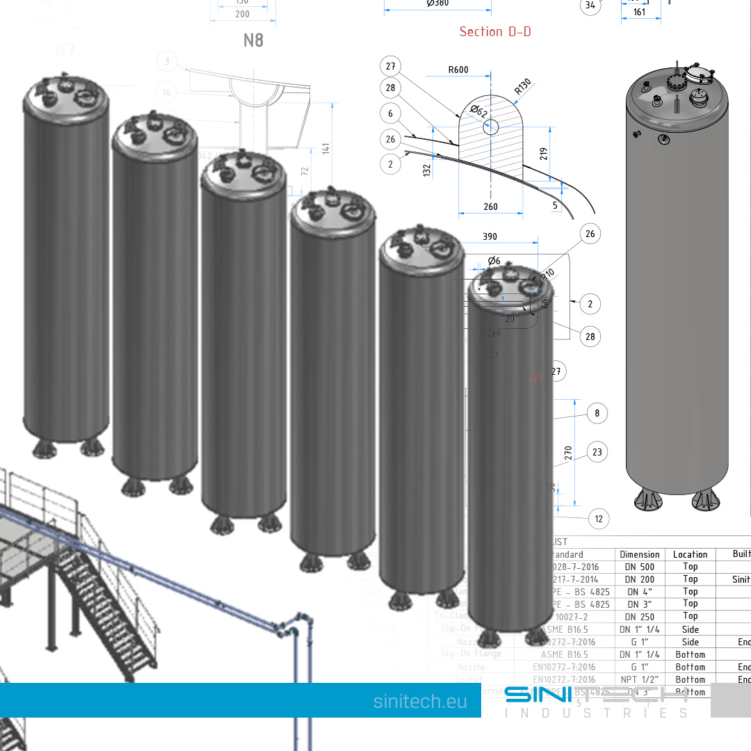 Storage vessels 24000 l. Basic data: 6 pcs. of heated, insulated stainless steel vessels, capacity 24000 l. Project Year: 2024.-25. Status: Delivered Vessels Storage Vessels Food Industry Turnkey Solution AISI 304 Stainless steel This project will take place from May 2024 to January 2025, and the project itself consisted of the design and manufacturing of process industry equipment internatinal leader in chocolate protein bars production. Equipment that we are going to design and manufacture is 6 pcs of stainless steel, insulated vessels with capacity of 24.000 l.. The installation of the equipment itself was also part of our scope of work. This project is part of complete chocolate bars factory we are building with our valuable client, you can see more equipment here. The material from which the vessels are made is AISI304. Project scope: Design of Equipment and Automation Material purchase Process Equipment manufacturing Pressure tests Packing & Shipping of Equipment Installation of Equipment Project photos